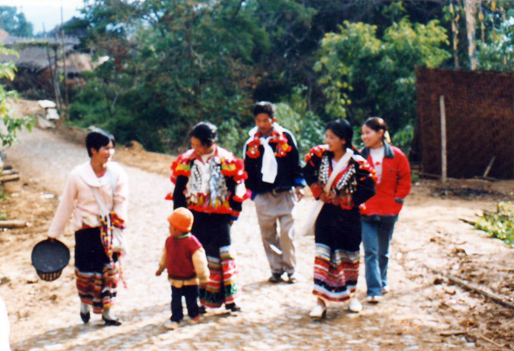 德昂族青年男女結婚前,都要先舉行認親儀式。屆時,男方的親戚如舅父、叔伯等陪同男青年到女方家,用帶去的酒肉糖茶等熱情地宴請女方家人,并分別贈送禮品給女方家庭成員。認親過后,女方就請卜卦人選定吉利的日子作為婚期,然后再通知男方家。男方要將彩禮于結婚前送達女方家(圖為德昂族女青年,1994)。