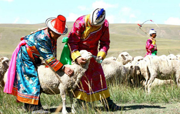 裕固族從事畜牧業生產已有悠久的歷史。牧民畜養牲畜的種類以羊(綿羊、山羊)、牛(分牦牛、犏牛、黃牛)、馬為主,還有少量的驢、騾,明花鄉尚有大量的駱駝。在人們的經濟生活中,絕大部分生產和生活資料都依賴于牲畜和畜產品的供給。裕固人居住用的帳篷、毛氈、穿的衣服、靴襪,日常飲食的肉、奶都來自畜產品。生產和生活上所用的大部分工具,如毛繩、褡褳、提水工具(皮口袋)、盛物口袋等,也全部是用畜產品制成的。此外,牲畜還是乘騎和馱運的重要工具。