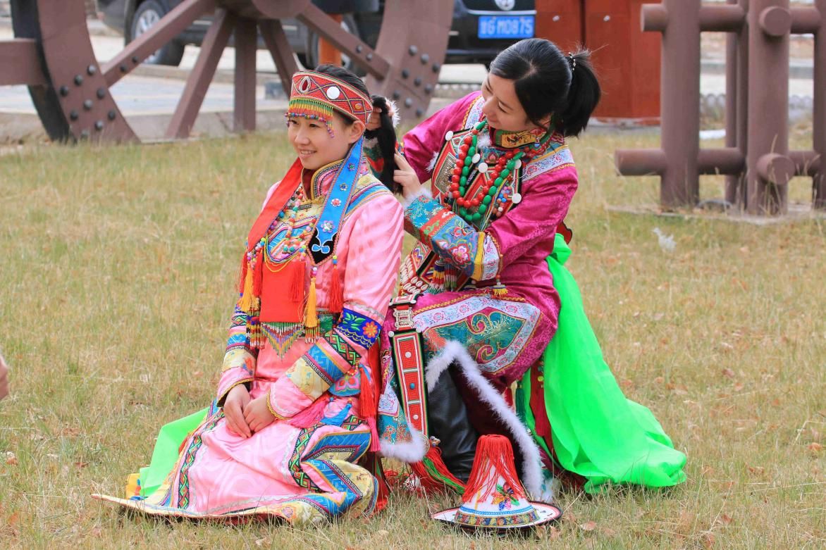 裕固族服飾大致可分為婦女服飾、未婚女子服飾和男子服飾三類。婦女服飾上有“衣領(lǐng)高、帽紅纓”的特征,婦女的帽子特點(diǎn)鮮明,東部各部落的婦女帽子形似禮帽,但頂部呈小圓頂形;西部各部落婦女帽頂則是尖頂,帽沿后部卷起。紅纓帽一般以芨芨草編織或羊毛搟制帽胚,用紅布做帽里,白布做帽面,帽沿為鑲有花紋的黑邊,帽頂配有紅纓,故稱“紅纓帽”。裕固族婦女服飾中的頭面是一件非常精制而價(jià)值昂貴的民間工藝品,用銀牌、珊瑚、瑪瑙、彩珠、貝殼等穿綴而成,共分三條,胸前左右兩條,背后一條。頭面也是裕固族已婚婦女和少女的區(qū)別標(biāo)志,婦女出嫁成婚后方可戴頭面。裕固族男子服飾也有其獨(dú)特之處,頭戴金邊白氈帽,帽沿后邊卷起,身穿大領(lǐng)偏襟長袍,衣料大多以布、綢、緞或褐子、獸皮為主,扎彩色腰帶,佩有腰刀、火鐮、鼻煙壺、煙荷包等飾品。裕固族有專門的婚禮服飾,色彩和配飾都有一定的規(guī)矩和要求。