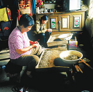 街津口村的赫哲族人在準備捕魚的網