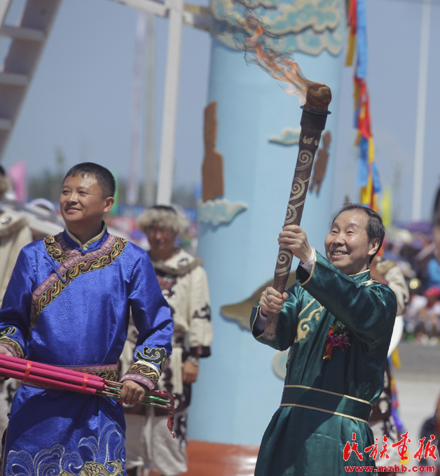 赫哲族“烏日貢”節在黑龍江同江市舉行。國家民委專職委員葛忠興(赫哲族)點燃象征火炬的圣香,開啟了今年的節日活動