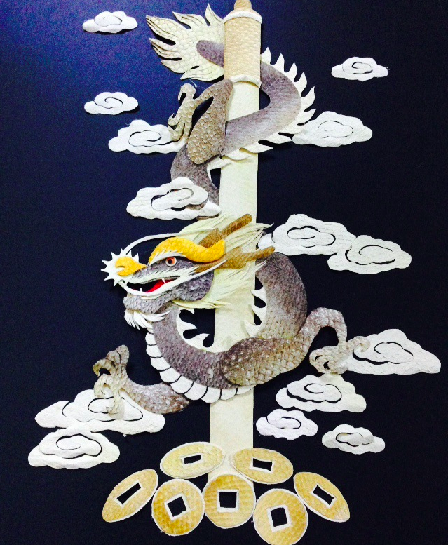 制作魚皮畫,首先必須對魚皮進行加工處理。手工費時大約3天,要經過剝制,晾干去鱗、晾曬魚皮、捶熟、漂色等許多細致環(huán)節(jié)。魚皮畫分為粘貼和鏤刻兩種。粘貼畫制作相對來說較為容易,先勾勒出初稿,然后選好底襯,再選適當?shù)聂~皮進行剪制。這一步驟特別重要,首先要確定要粘貼的部位,來選則魚皮的顏色,剪完之后,就可往底紙進行粘貼了,一幅魚皮畫也就完成了。內容一般生活方面的事物,還有動物、人物等等。魚皮鏤刻是先選好魚皮,一般都是選擇比較大的魚皮,有陰刻和陽刻兩種,在魚皮的反面進行勾畫(也可直接剪制 ) 經過剪刻完成。