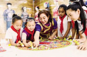 赤峰市松山區興安街道臨潢家園社區的民族融合小課桌。新華社發