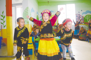 涼山州雷波縣汶水鎮(zhèn)馬處哈三峽新村幼教點(diǎn),孩子們?cè)诳鞓返赝嫠!@湮暮茢z