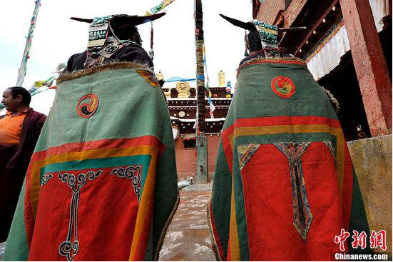 盡管歷史悠久,但它并沒有隨著時光的流逝和時代的變遷而被束之高閣,實際上,即便是今天,這些服飾仍然是當地重要的宗教活動中必不可少的內容,在科迦寺每年藏歷1月12日大譯師仁青桑布建成108座殿堂和寺廟的慶功紀念日上,科迦村有這套服飾的7戶家庭的婦女都要穿上這套服飾在科迦寺僧人跳神舞的間隙表演宣舞。