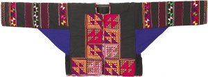 北京服裝學院民族服飾博物館藏貴州雷山地區(qū)苗族花蝶紋貼補刺繡背扇片。