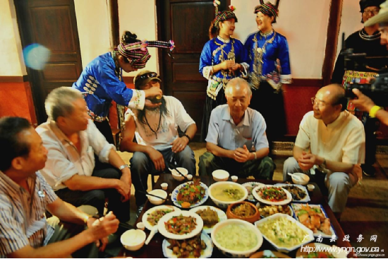 西行音樂公路之旅在享用土司盛宴——“三滴水”后,劇組被壯民族創造的具有深厚民族文化貫穿其中的民族飲食文化所折服,被壯民族熱情好客的情緒所感染。西行音樂公路之旅執行導演劉暢說,北京有滿漢全席,想不到在廣南這個地方也有壯族自己的“滿漢全席”,他說,我和我的小朋友們都驚呆了!