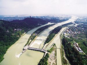 都江堰位于四川盆地西部的都江堰市,坐落于成都西部岷江之上,是中國最出名的水利工程之一,始建于2000多年以前的秦國,由李冰父子率眾所建。這座古老的無壩引水工程,是中國古代勞動人民勤勞、勇敢、智慧的結晶。2000年11月,都江堰與青城山一起被聯合國教科文組織列入《世界遺產名錄》。世界遺產委員會是這樣評價它的:“建于公元前三世紀,位于四川成都平原西部的岷江上的都江堰,是中國戰國時期秦國蜀郡太守李冰及其子率眾修建的一座大型水利工程,是全世界迄今為止,年代最久、惟一留存、以無壩引水為特征的宏大水利工程。”