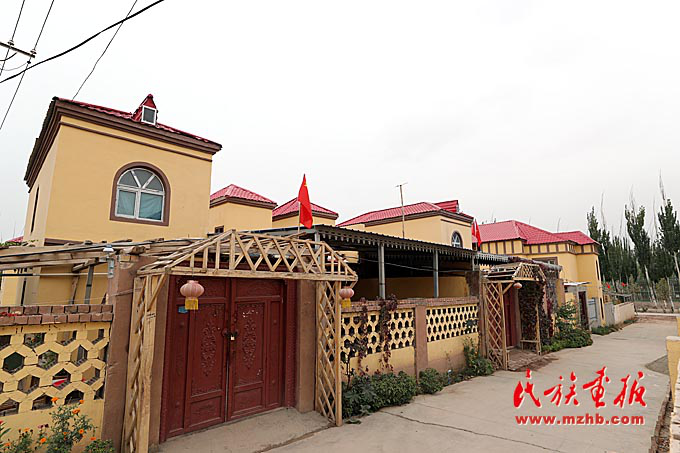 艾日克博依新村家家戶戶新居門上都掛著國旗。