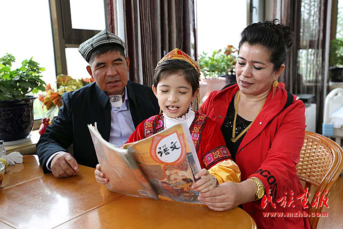 木合塔爾·艾比布拉夫婦教授7歲小女兒學(xué)習(xí)國家通用語言。