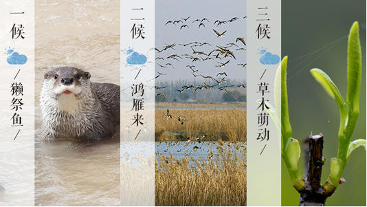 我國古代將雨水分為三候:“一候獺祭魚,二候鴻雁來,三候草木萌動?!?此節氣,水獺開始捕魚了,人們將魚擺在岸邊先祭祀后食用;五天過后,大雁開始從南方飛回北方;再過五天,在“潤物細無聲”的春雨中,草木因地中陽氣的上騰而開始抽出嫩芽。從此,大地漸漸開始呈現出一派欣欣向榮的景象。