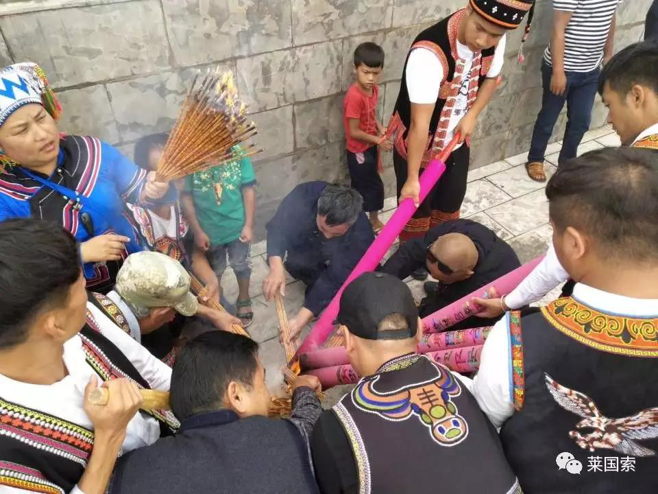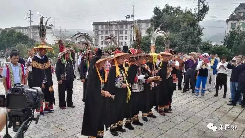 祭祖大典隆重、肅敬、莊嚴(yán)。儀式: 1、吹奏長號樂、鳴禮炮,敬告天地東西南北中五方神抵;2、奏樂(長號、噴吶),請彝族畢摩上香;3、奏樂(長號、噴種),敬貢三牲,果品,圣水,豬頭,雞;4、請彝族畢摩撒五谷,念誦《散五谷詞》;5、彝族畢摩向祖先阿普駕幕行跪拜禮,恭誦《祭祖祈福經(jīng)》;6、請各地同胞代表恭誦《祭文》;7、請各位領(lǐng)導(dǎo)、各位來賓、各位朋友全體起立!向彝族祖先阿普篤幕及六祖行叩首禮:一鞠躬!再鞠躬!三鞠躬!禮畢!8、奏樂(長號、噴吶),恭請貴賓敬獻(xiàn)高香。