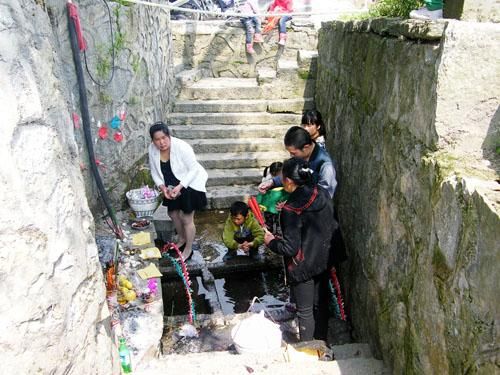 二、自然崇拜。生育了小孩后的家庭,如果孩子一直哭鬧不停或經常生病、厭食等,家人除了對孩子求醫問藥外,還依照傳統的習俗,并將生辰八字請人算卜。如果孩子在金、木、水、火、土中有缺項的,就需要去找外力來作保。家里為了得到“圣靈”的庇蔭,使孩子不哭鬧或不生病,達到長命富貴的目的。家長就根據卜卦的提示,并在農歷二月初把孩子拜祭給古井或古樹、巖石、糧倉、橋梁、土地廟等。如拜祭這些自然物或建筑后,就給孩子改名為“井保”或“樹保”、“巖保”、“倉保”、“橋保”、“土地”等。
