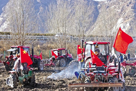 “現在國家大力支持農業發展,不斷推進農業機械化,我們不僅不用自己耕地,而且效率和產量都提高了很多,我們家富余的勞動力外出就業,一家人的生活也越過越好啦。”協榮村村民索朗曲培說。