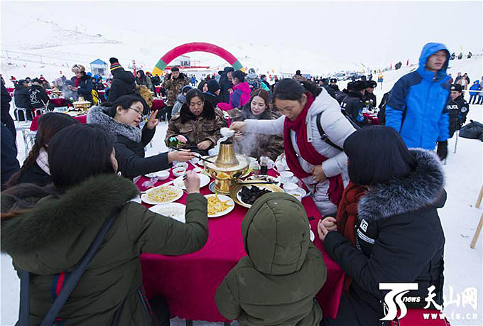 此次冰雪旅游文化節持續兩日,內容豐富多樣,除了歌舞表演外,還將各類民俗文化與冰雪主題相融合,將伊犁各族群眾的特色生活方式融入冰雪主題活動中。文化節設有雪地摩托車、民俗體育活動、冬宰文化展示及美食匯、千人雪上涮火鍋、冰雪篝火音樂節、雪山煙花宴、雪夜宿天山、那拉提冬雪攝影節等板塊,各個板塊交互式進行,“體驗”和“互動”貫穿了整個活動過程,拓展了游客對雪和冬季的認知。