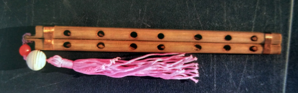 羌笛是一種吹管樂器,歷史悠久。羌笛至今已有兩千余年歷史。據史載,西漢前,羌笛面上有四孔,公元一世紀由京房加一高音按孔,為五孔。東漢馬融在《長笛賦》就曾有“近世雙笛從羌起”的記述,唐代亦有“羌笛何須怨楊柳”的名句。發展到近代羌笛已成六孔。2006年5月“羌笛演奏及制作技藝”被列入《第一批國家級非物質文化遺產目錄》。羌笛在羌語中稱為“其篥”“士布里”或是“幫”,是一種古老的民間豎吹樂器。它由兩根長約15—20厘米,直徑1厘米左右,筒孔大小一致的竹管并在一起,用絲線纏繞,管頭插著竹簧。管身竹制或骨制,由發音簧哨和方筒形管體組成。兩管長短、孔距和音高相同。管上設五個或六個按孔。演奏時,雙手持笛,將簧哨含入口內,用特殊的“鼓腮換氣法”吹奏,指法與笛相同。制作羌笛一般選用箭竹,并根據筒管的長短、厚薄及筒管大小測定音準,孔距必須精確相等,否則音準不一。