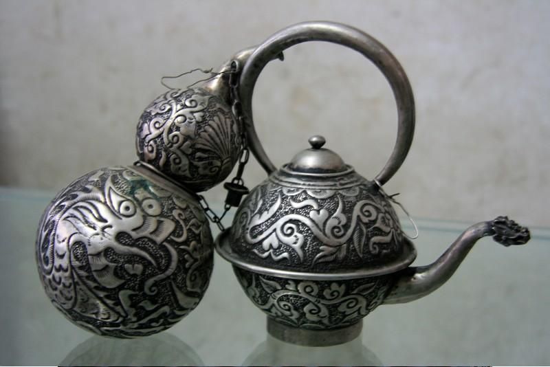 銀飾造型通常以龍、虎、牛、馬、鳥、昆蟲、花卉等動植物圖案為元素,經過溶銀、錘片、拉絲、鑄模、做花、絞絲、編花、焊接、洗花等多道工序完成。成型的銀飾在最后一道工序中,需放入硼砂與火硝的混合液中浸泡,再高溫烘干并加熱至紅色,然后再放入明礬水中洗滌,去除污物和雜質,即可生成銀金屬特有的質感和光亮。劍河苗族銀飾工序繁復,技藝精湛,造型栩栩如生,成品精美絕倫。