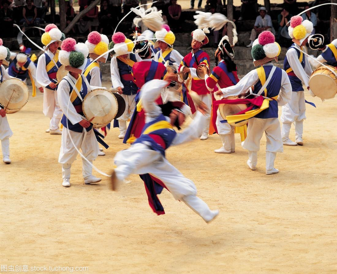 說起朝鮮族的四物樂就不得不先說朝鮮民族民俗音樂文化產生的背景。通過眾多資料可以看出,朝鮮民族文化可以追溯到新石器時代。在古代前期的音樂文化主要是原始共同體社會里祭天儀式中的樂歌舞,也就是初步的器樂、聲樂以及舞蹈三位合一的表現形態。