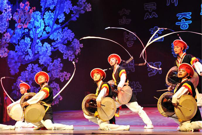 其實朝鮮族的打擊樂發展歷史源遠流長。我國民族打擊樂眾多,特征各異,各民族的打擊樂特征又連接著本民族的其他音樂。朝鮮族音樂文化的產生與發展相當古老,朝鮮族打擊樂與音樂形式多種多樣,有各種類型,如“盤坐式四物樂”、“游走式四物樂”、“立鼓”等等,而四物樂是朝鮮族具有代表性的打擊器樂組合之一。