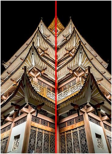 對稱法構圖,就是中軸對稱,分為縱軸對稱和橫軸對稱,把整個畫面進行平分,帶來視覺的平衡,這種對稱法構圖主要是用在一些很對稱的題材上,比如建筑類題材上用的要多一些。