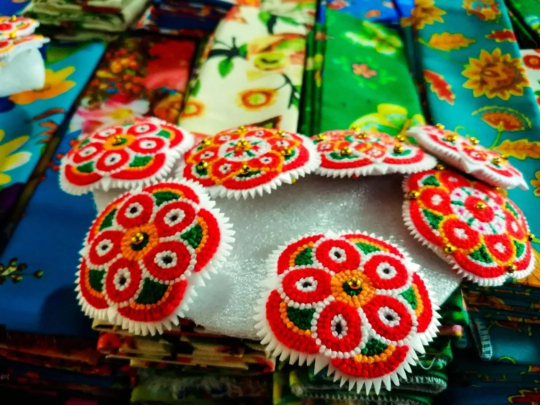 刺繡在惠安女服飾上廣泛存在,與國內出名的刺繡不同,它們只是惠安女服飾的附屬品,質樸甚至經常被人忽視,它們跟隨惠安女出入于漁港與山野,在陽光中耀眼,在海風中飄揚,堪稱“行走的刺繡”。