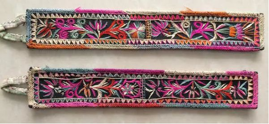 ▲腰巾繡花帶,刺繡紋樣植物紋、幾何紋居多,基本都是黑底彩繡,色彩穩重大方。
