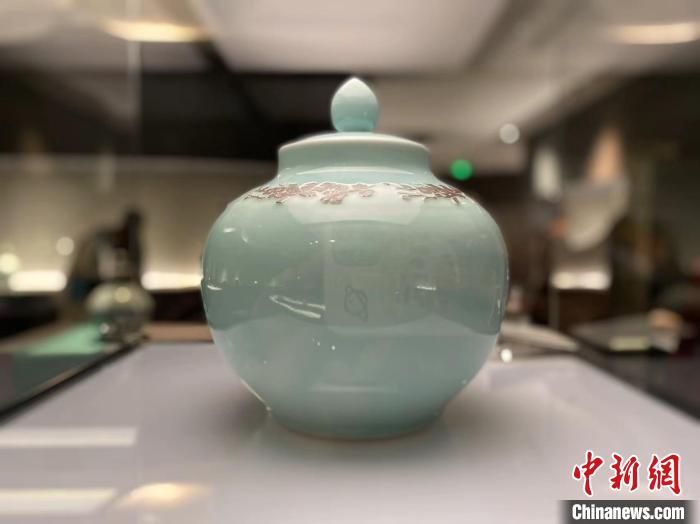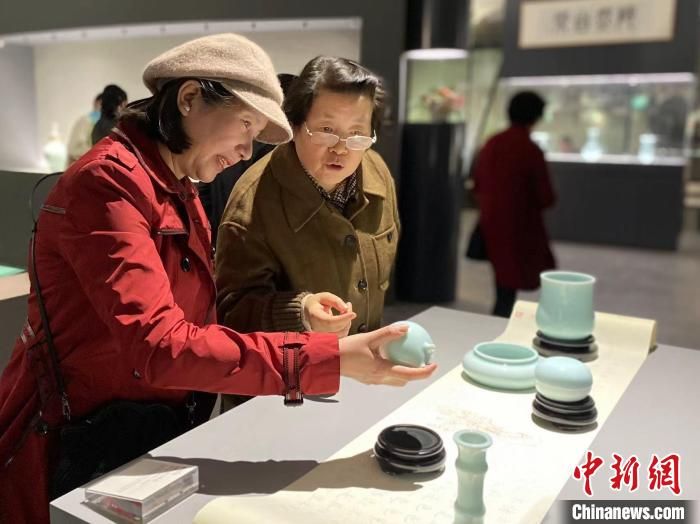 參觀者觀賞青瓷作品。 錢晨菲 攝