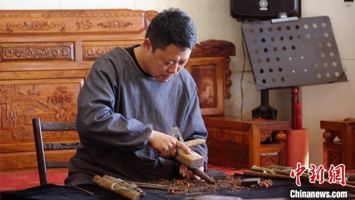 李曉盼在手工制作嗩吶。 吳瓊 攝