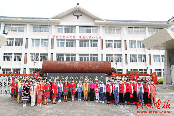 云南省臨滄市滄源佤族自治縣國(guó)門(mén)小學(xué)是一所位于中緬邊境線(xiàn)上的縣直小學(xué),創(chuàng)辦于1937年2月,曾四易校址,六更校名。學(xué)?,F(xiàn)有38個(gè)教學(xué)班,在校學(xué)生1668人,其中少數(shù)民族學(xué)生1172人。在開(kāi)展民族團(tuán)結(jié)進(jìn)步教育工作中,滄源佤族自治縣國(guó)門(mén)小學(xué)以社會(huì)主義核心價(jià)值觀為引領(lǐng),以德育工作為抓手,充分發(fā)揮少先隊(duì)組織的作用,形成了以學(xué)校為龍頭、家庭為基礎(chǔ)、社會(huì)為平臺(tái)的民族團(tuán)結(jié)育人團(tuán)隊(duì)。