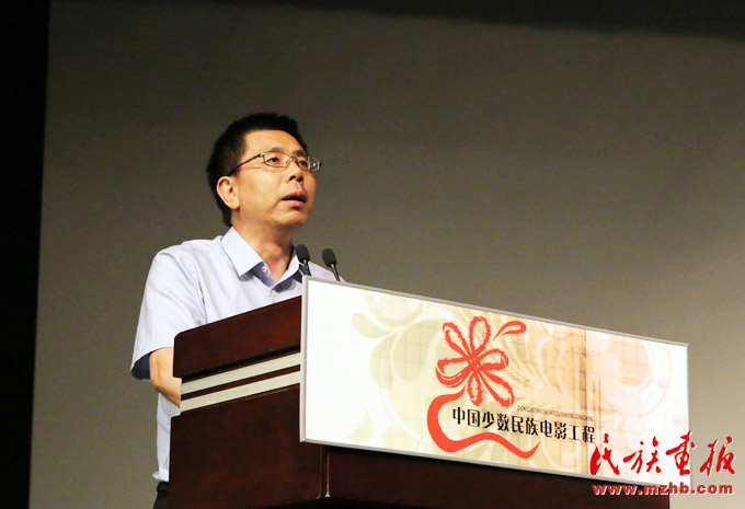 中國少數民族電影工程領導小組辦公室副主任、宣傳推廣部主任,中國民族影視研究中心主任牛頌主持研討會