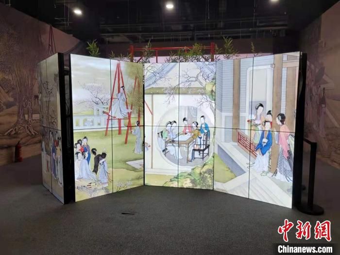 故宮《石渠寶笈》繪畫數字科技展的“展卷”區展出的繪畫作品,是經過故宮博物院專家、文化藝術學者共同研究探討,甄選出《石渠寶笈》中數十幅最具代表性書畫作品,以1:1的比例還原仿制,展示中國古代書畫作品精粹,讓民眾在家門口即可享受到科技、文化、藝術相融合的展覽。