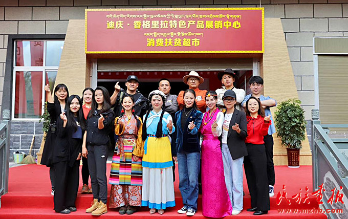 2020年7月,何永群(前左四)在迪慶·香格里拉特色產品展銷中心消費扶貧超市參加活動。