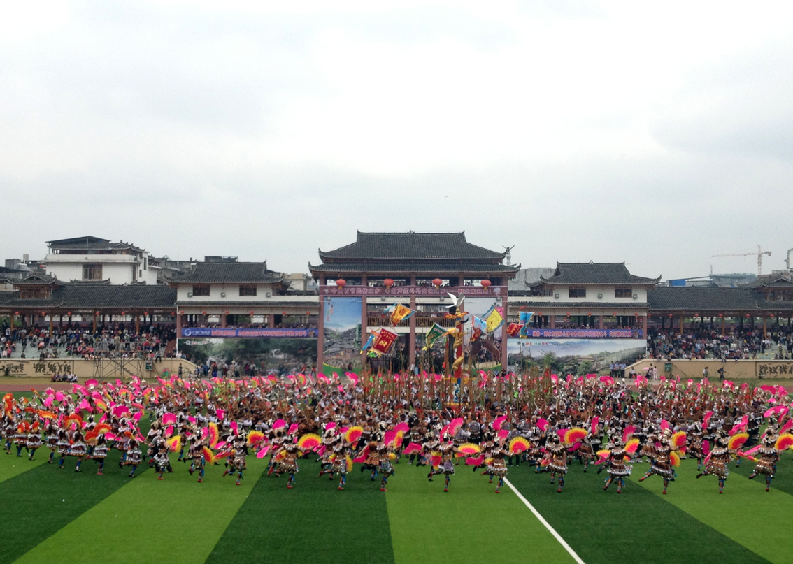 “錦雞舞”也是在銅鼓和蘆聲伴奏下,由中年以上的苗族婦女在銅鼓坪上表演的傳統祭祀性舞蹈,這個舞蹈充分體現了苗族人民自古對飛鳥圖騰的崇拜和向往。她們頭戴銀飾,身穿黑色短上衣,腰間束若干條五彩鑲邊,末端墜掛銀牌和流蘇似錦雞華麗羽毛的彩條長裙,臀部被高高墊起效仿錦雞高翹的尾羽。她們圍圓圈起舞,舞蹈動作緩慢,在或向前或向后的舞步中,模仿錦雞頻頻“踱步”“旋轉”和“飛翔”,隨動作變化而使腰間彩帶起落飄散的舞姿,把人們的心又帶回到遠古時代。象征鳳凰的“錦雞舞”,充分表現了苗族婦女為祈求民族富足和五彩人生虔誠而肅穆的場面。