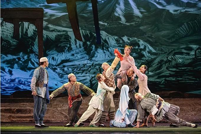 同時(shí),作為以“花兒音樂(lè)”為主的音樂(lè)劇,該劇在發(fā)掘和弘揚(yáng)民族音樂(lè)的同時(shí),充分發(fā)揮現(xiàn)代交響樂(lè)的音樂(lè)張力、表現(xiàn)力和震撼力,賦予音樂(lè)劇以現(xiàn)代節(jié)奏,使得全劇顯示出波瀾起伏而張弛有度、潤(rùn)澤細(xì)微而又縱橫捭闔的大劇格局。在舞蹈方面,該劇既能讓觀眾觀賞到柔美的迎客舞、剛勁的踏腳舞,又可見(jiàn)狂飆突進(jìn)式的現(xiàn)代舞蹈,樂(lè)與舞的結(jié)合使得該劇更具可視性與感染力。