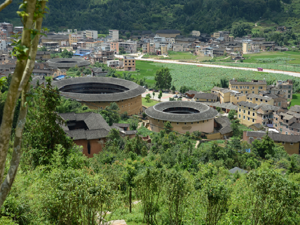 客家土樓防御性能比較好,一樓不開窗,樓內水井糧具備,建造工藝世所罕見。它是以生土作為主要建筑材料,摻上細沙、石灰、糯米飯、紅糖、竹片、木條等,經過反復揉、舂、壓建造而成。樓頂覆以火燒瓦蓋,經久不損。土樓高可達四五層,供三代或四代人同樓聚居。