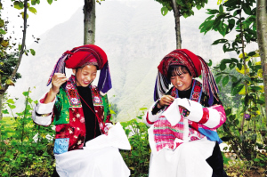 當地的布依族婦女在繡花
