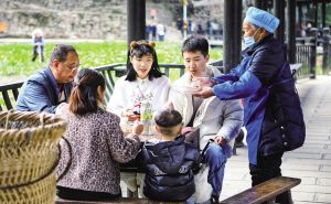 在村里修復舊屋的趙貢彩接到游客電話,馬不停蹄地趕回家中,自家手工制作的苕粉成了游客心心念念的香餑餑。拿出早已生銹的秤桿,一袋袋苕粉被游客搶著購買。“都是留著自家吃的,哪想著能賣出去喲。”笑著說罷,趙貢彩拿出手機,微信一掃,錢款立即到賬。