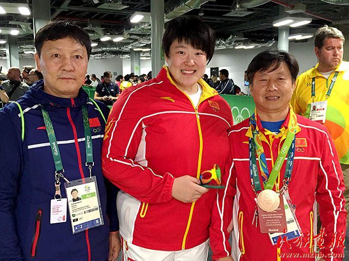 2016年,里約奧運(yùn)會期間,烏日根桑格(左)與中國國家柔道隊(duì)隊(duì)員于頌(中)、國家柔道隊(duì)原主教練程志山合影留念。