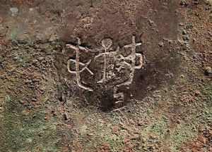 婦好墓出土的“‘好’連體銅甗”內壁上的銘文。新華社記者李安攝
