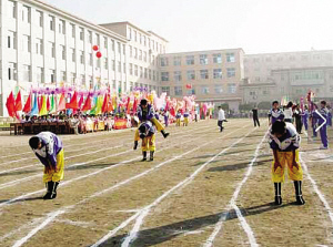 陣擺長(zhǎng)龍跑馬城。“分兵遣將選良才,陣擺長(zhǎng)龍對(duì)面排。正欲齊心奪勝券,格格送信出城來。”這首詩描寫的是滿族兒童春季玩的一種游戲——“跑馬城”。玩這種游戲時(shí),孩子們分成人數(shù)相同的兩隊(duì)橫列,面向而站。玩時(shí),甲隊(duì)先誦兒歌一句,乙隊(duì)接下句,一遞一句:“機(jī)機(jī)靈,跑馬場(chǎng),馬城開,打發(fā)格格送信來!”“你要誰?我要某某某!”被點(diǎn)到名字的兒童立刻向?qū)Ψ經(jīng)_去,對(duì)方陣營(yíng)則手臂相連形成一道防線,沖撞者如果沖破對(duì)方的防線,就從對(duì)方陣營(yíng)中挑選一人帶回自己的隊(duì)伍;如果沒有沖破對(duì)方的防線,沖撞者就被對(duì)方俘虜了。然后雙方再進(jìn)行下一輪“對(duì)話”和“沖營(yíng)”。游戲結(jié)束時(shí),以剩下人數(shù)多的一方為勝方。這種游戲最適合男孩玩,他們往往玩得滿頭大汗,樂此不疲!