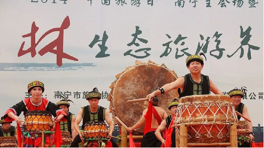 上林縣瑤族鼓樂,原汁原味,鼓點雖然簡單,卻具有原生態的民族特色。后經藍卓寶、藍連榮、盧成、盧飛燕等學者挖掘整理,2010年開始籌備瑤鼓樂,2011將具有上林瑤族鼓樂特色的“瑤山鼓”搬上舞臺。
