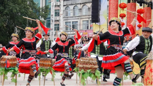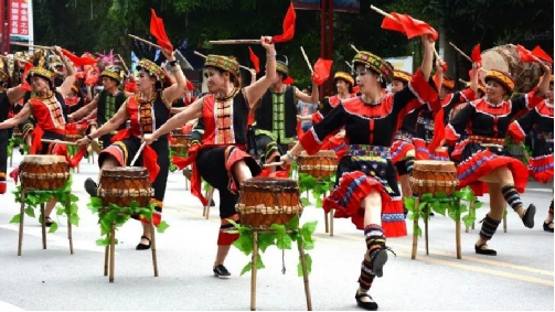 糧食得到了豐收,鼓成了瑤民的功臣,成了瑤民心中的神。后來這被瑤家人戲稱為“趕猴鼓”的打鼓方式就慢慢演變成為各大小節日的表演節目。于是趕猴鼓成了瑤民住在山中的神鼓,流傳至今便有了今日的瑤山鼓。