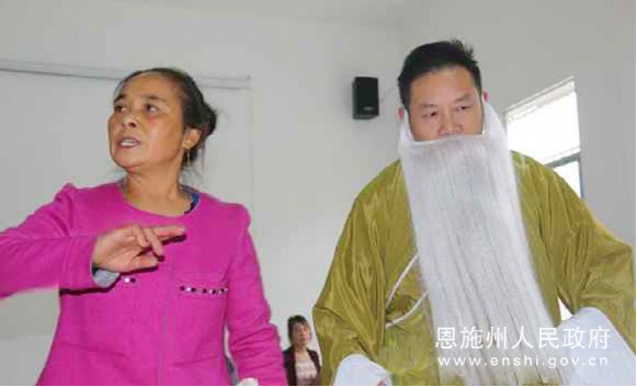 南劇是流行于恩施州境內具有深刻影響的地方大劇種之一,常在廟臺演出,又長于演唱連臺大戲,俗稱“施南調”“高臺戲”。南劇劇目豐富,號稱“八百出”,但實際是不止這個數,現存的手抄本劇本就有1300多個,劇目980出,這些資料現存于湖北省藝術研究院(原省戲工室),是研究南劇歷史的重要文化遺存,十分珍貴。南戲劇目主要取材于歷史演義和民間故事、神話傳說等。南劇表演分四大行當:生、旦、凈、丑,各行當都有自己的表演程式,對本地域內其他姊妹表演藝術行當的豐富和發展有著重要的影響。