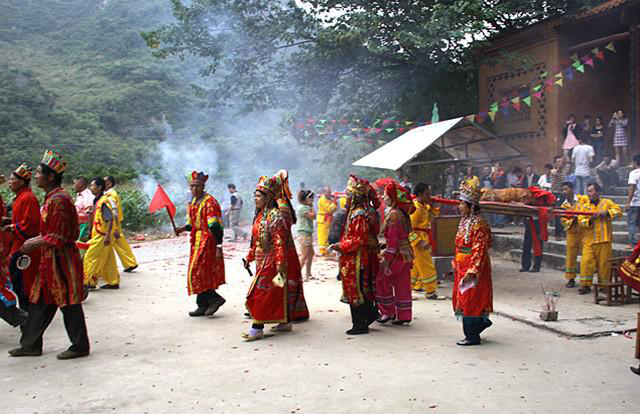 霜降是秋季的最后一個節氣,也是步入冬季的前奏。每年農歷九月,晚稻收割結束之后的霜降期間,勞作了一年的壯族鄉民們要舉行壯族霜降節。壯族霜降節是壯族典型的民俗活動,依托于壯族稻作文化,最初是壯族民眾酬謝自然、慶祝豐收的一種形式,表達人們祈盼五谷豐登的良好愿望,后發展成為祭祀民族英雄、進行商貿活動、民俗文化表演的綜合性民俗活動。壯族霜降節主要流行于廣西壯族地區的天等、大新、德保、靖西、那坡等縣,以及云南東部等地區,于每年農歷霜降后的9天內舉行,參加人數萬余人之多。