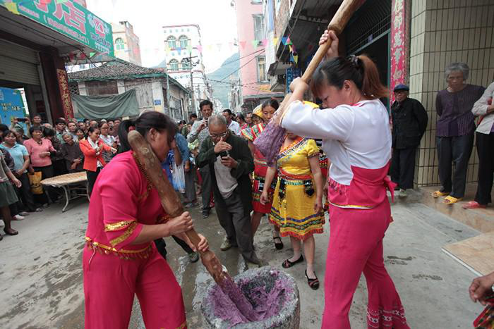 這一節期,各家各戶都準備“糍那”、“迎霜粽”等各種特色食品,招待親朋好友,人們以有朋友到家宴飲為榮。