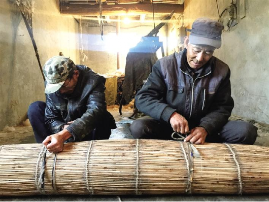 接著,父子幾人配合著,開始蹬簾子步驟。“搟簾子的步驟最關鍵。”杜海明說,蹬簾子的時候,蹬的時間長了不行,短了也不行,要掌握好時間,才能達到最好的效果。“哪都需要精細化,稍不精細就會出現氈散了、爛了,做不成功就廢了。”說著,杜占財和杜占福在杜海明的帶領下,三人用雙腳,來來回回仔細地進行著搟簾子。