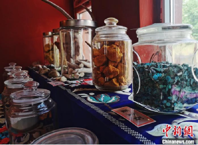 圖為唐卡繪畫礦物顏料展示。 張?zhí)砀?攝