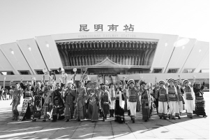 云南探索“高鐵沿線創建聯盟”等創新做法,全面深入持久開展民族團結進步創建工作。圖為各族群眾在慶祝高鐵開通儀式上載歌載舞。云南省民宗委供圖