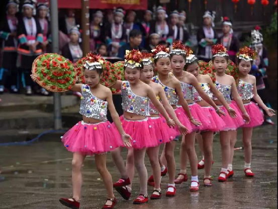 小朋友在表演民族歌舞