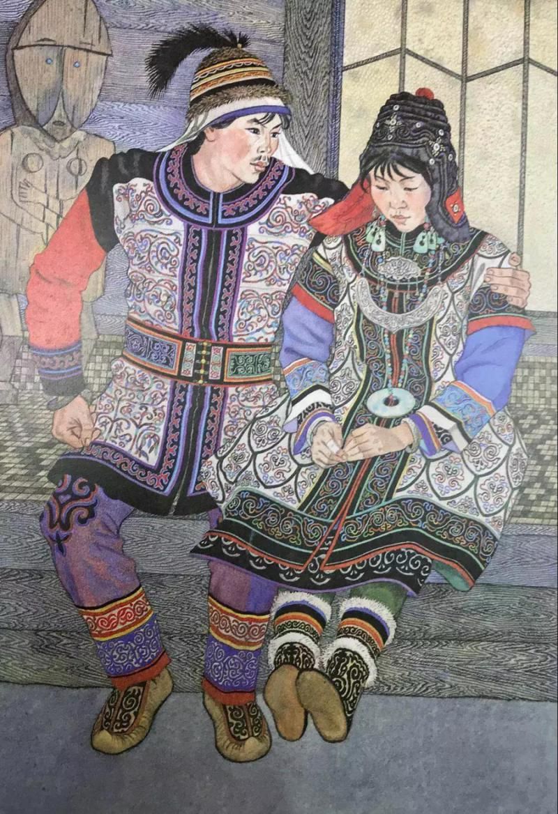 那乃族的插畫,有的用細膩的繪畫語言真實再現了那乃族的生活場景,有的用生動形象的裝飾語言表現了那乃族的傳說故事。
